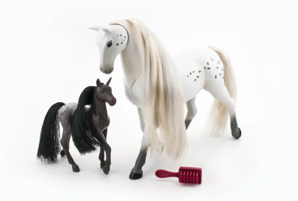 LANARD TOYS kolekcija „Royal Breeds" - tai šaunūs rinkiniai žirgų mylėtojams. Šiame rinkinyje yra kumelė su kumeliuku, kurie pasiruošę smagiems nuotykiams. Abu žirgai turi gražius ir ilgus karčius ir uodegą, kuriuos gali šukuoti ir pinti. Kokybiški „Royal Breeds" rinkiniai papildys tavo žirgų kolekciją ir bus puiki bei džiuginanti dovana bet kokia proga!